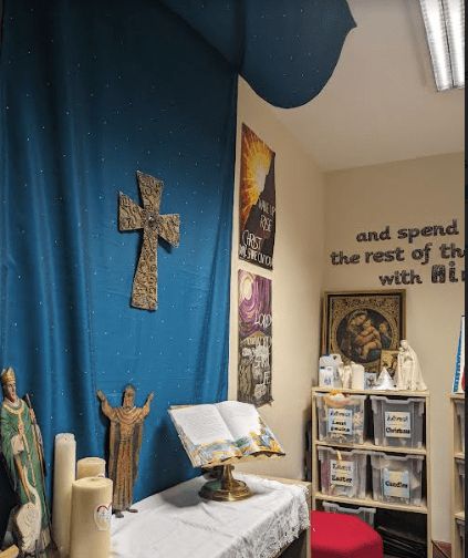 Each class has a spontaneous prayer box which children can take – (Containing an olive wood cross, LED candle, Bible story books and writing materials) to record their prayers